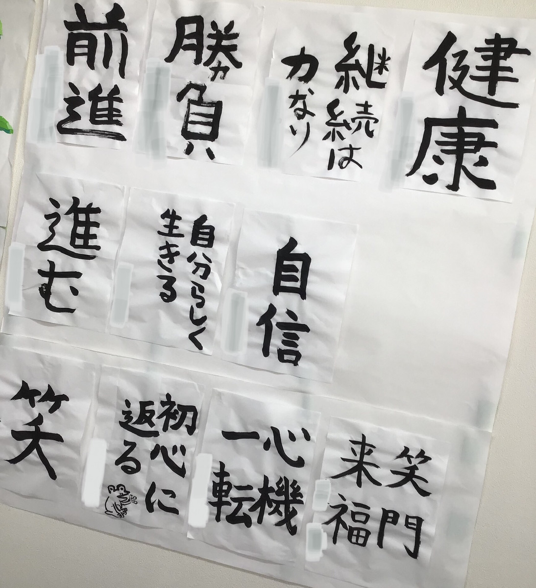 その書初めですが、後日 壁に貼ってもらいました。